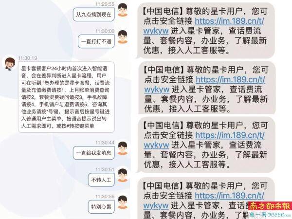 家住深圳罗湖的王先生告诉记者,他接连拨打了十几次电信官方客服电话,每次都被引导至电信星卡微信客服,可点开链接后,客服排队人数常显示近百人,往往要等上数小时。