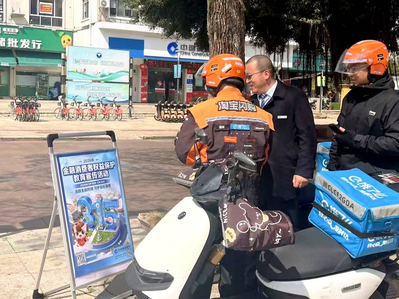 针对骑手群体易遭遇电信诈骗、非法借贷等风险,建设银行台州分行将金融消费者权益保护宣传搬到了配送站点。工作人员利用骑手等单、休息的间隙,通过真实案例讲解、发放宣传折页等方式,向骑手普及反洗钱、防范非法集资及个人征信保护知识。今年“3·15”活动期间,共开展专场宣讲超20场,覆盖受众近1000人次,有效提升了新就业群体的金融素养和风险防范意识。