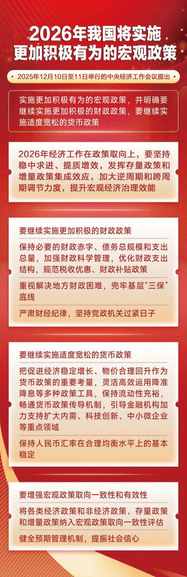 宏观政策是护航经济稳定运行的重要手段。2025年12月10日至11日举行的中央经济工作会议提出,实施更加积极有为的宏观政策,并明确要继续实施更加积极的财政政策,要继续实施适度宽松的货币政策。 张琳/制图
